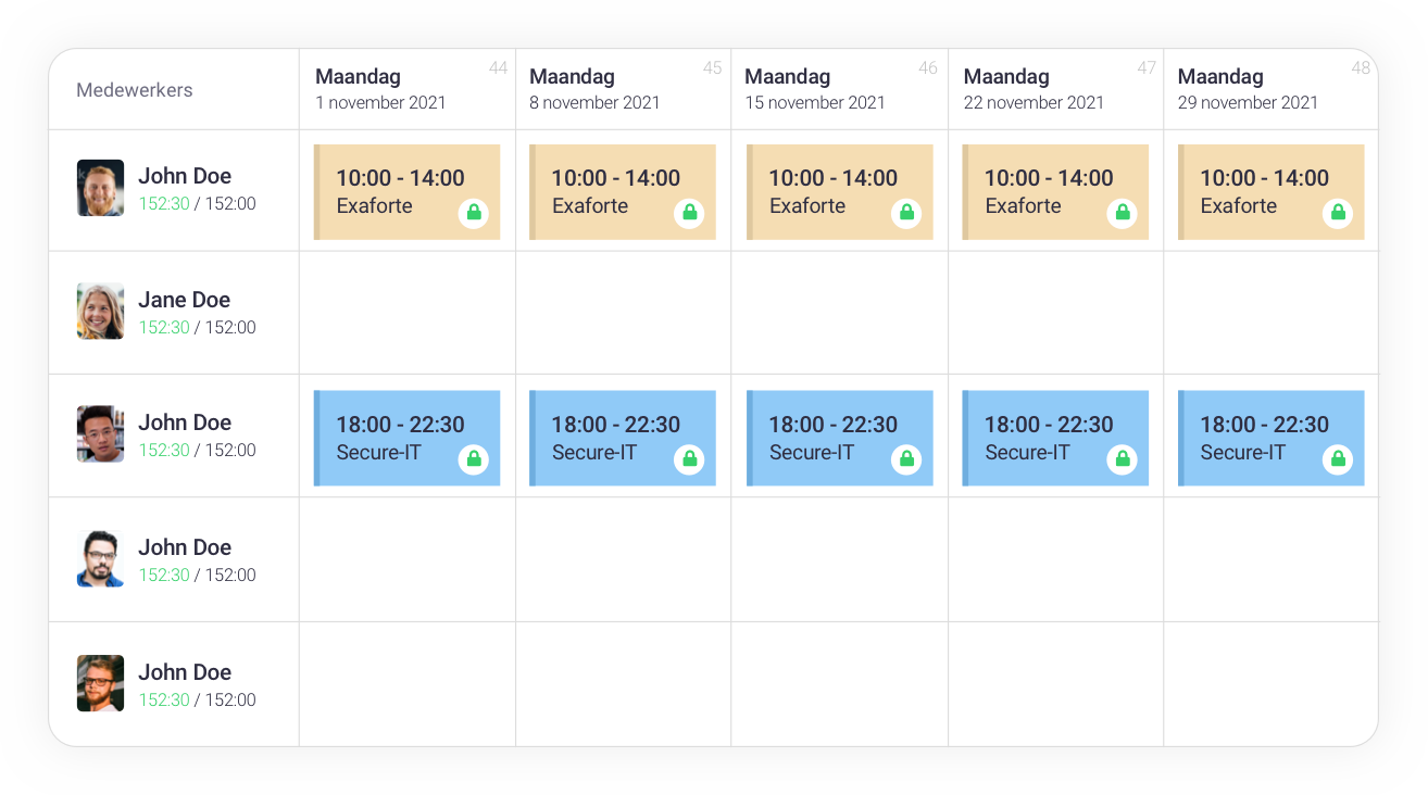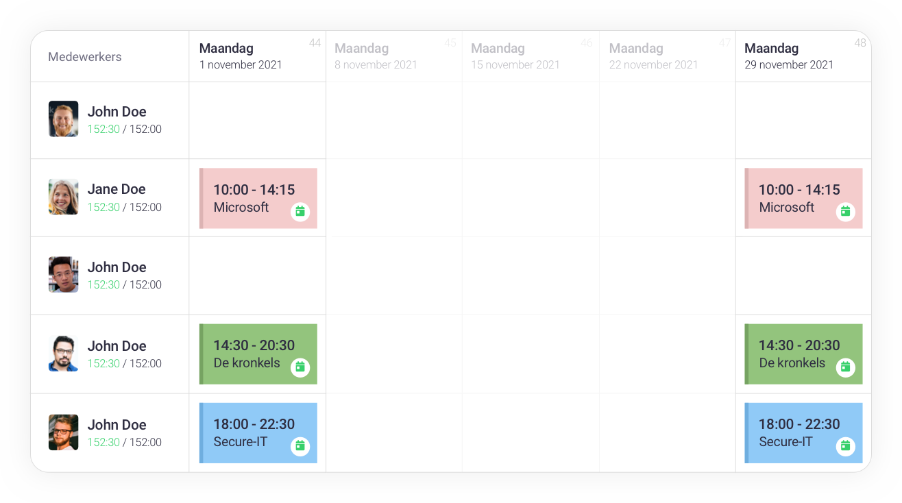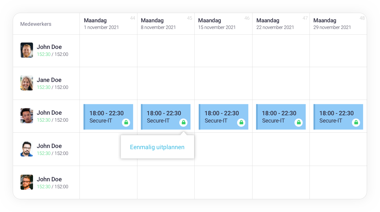 Plan eenmalig je vaste plankaart uit voor bijvoorbeeld ziekte of verlof.